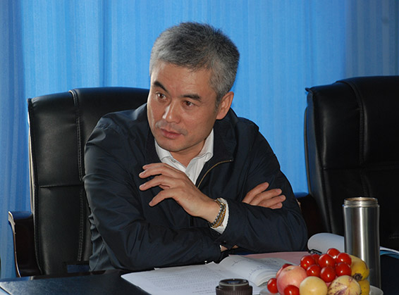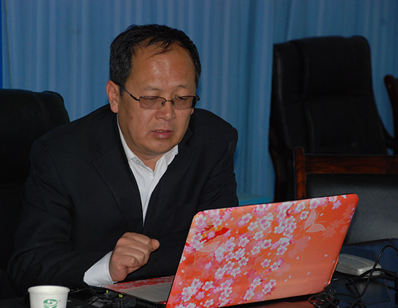 大禹节水集团副总裁薛瑞清向审查组汇报示范基地建设相关情况