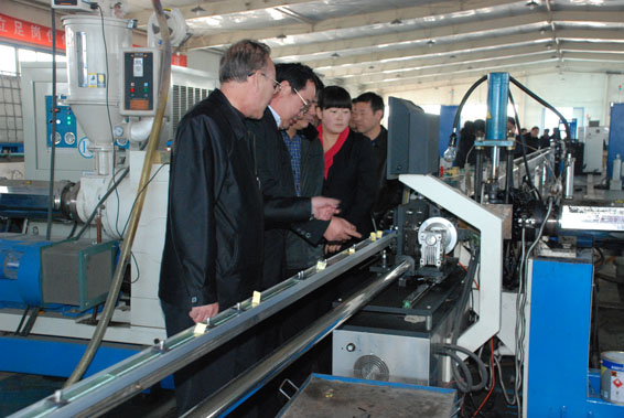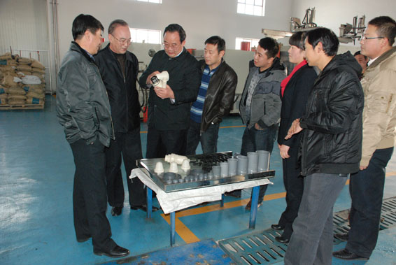 在集团公司董事长王栋的陪同下,考察团一行先后来到公司展厅、滴灌车间、PVC/PE车间、施肥过滤器车间、管件车间及实验室参观考察。在公司展厅,考察团一行从公司发展历程、企业文化、荣誉资质、国际交流与考察以及近几年各界领导对公司的关怀等方面对公司有了全面的了解,集团公司董事长王栋还特别向考察团一行介绍了大禹集团下设各子(分)公司的基本情况;在各生产车间,考察团一行对公司生产的高效节水灌溉产品进行了一一了解,并不时与集团公司董事长王栋交流,询问现代化高效灌溉及灌溉产品方面的问题;在大禹集团实验室,考察团一行仔细了解了针对原料和成品进行实验的各类仪器;参观考察之后,甘肃省引洮工程建设管理局考察团一行对大禹集团生产的各种现代化高效节水灌溉产品给予了充分肯定和高度评价。