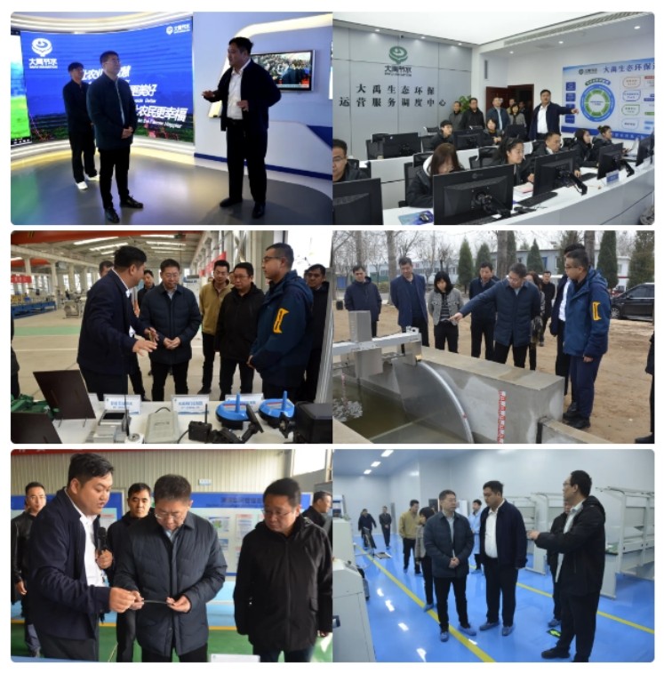 在大禹节水产业园,蒋牧宸主任一行先后考察调研了大禹节水产业园文化展厅、运营调度中心、智能测控设备制造车间、现代化智慧灌区模拟示范中心、现代化灌区量测装备制造车间以及精量灌溉装备制造车间等多个区域。通过实地考察,全面了解了大禹节水集团的发展历程、大禹节水产业园区的建设及运营情况。