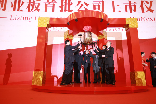 20091030日上午830分,上市仪式正式开始,由深交所总经理宋丽萍主持,深交所理事长陈东征、央行与证监会领导先后致辞。