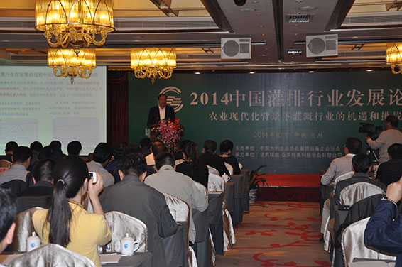 2014中国灌溉行业发展论坛在兰州飞天大酒店举行,本次论坛的以“农业现代化背景下灌溉行业的机遇和挑战”为主题