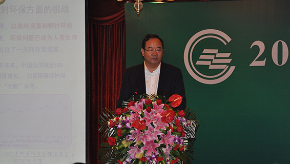 大禹节水集团公司董事长王栋以《灌溉行业在发展过程中如何应对环保方面的挑战》为题作主题发言