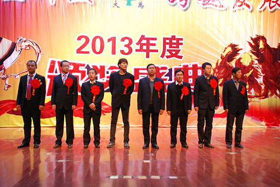 大禹节水集团董事长王栋、副董事长王冲、总裁谢永生、董事会秘书王光敏、以及各副总裁、各子(分)公司董事长、总经理和先进集体、先进个人代表、部分员工及家属亲友600余人欢聚一堂,一起分享大禹人在2013年团结奋斗的喜人成果,共同展望充满希望的2014年。