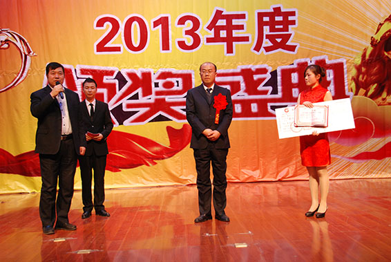 大禹节水集团副董事长王冲为2013年度“销售状元”获得者岳玺颁奖