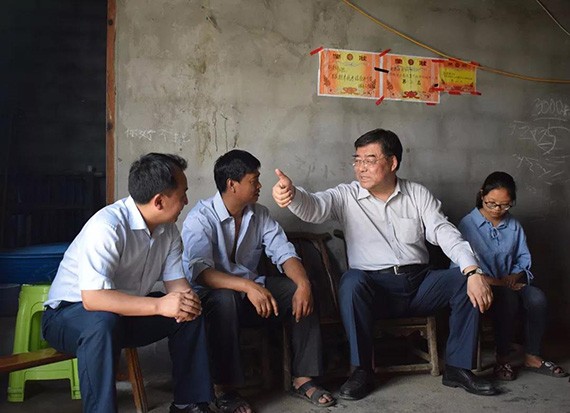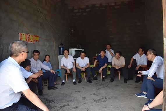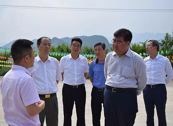 ▲集团公司党委书记王冲(左三)陪同水利部副部长田学斌(右二)在重庆市巫溪县调研扶贫攻坚工作