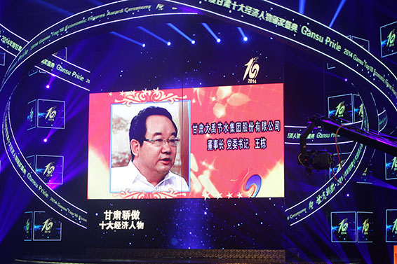 24日晚,由甘肃省广播电影电视总台(集团)发起,甘肃省发展和改革委员会、甘肃省工业和信息化委员会、甘肃省商务厅、甘肃省人民政府国有资产监督管理委员会、甘肃省总工会、甘肃省工商联合会等单位联合主办的“甘肃骄傲”2014年度甘肃十大经济人物颁奖典礼在甘肃大剧院隆重举行,“2014年度甘肃十大经济人物”正式揭晓。大禹节水集团股份有限公司董事长王栋等十名企业家代表最终从一百多位来自甘肃各行业优秀企业家候选人中脱颖而出,荣获“甘肃骄傲”2014年度甘肃十大经济人物称号。