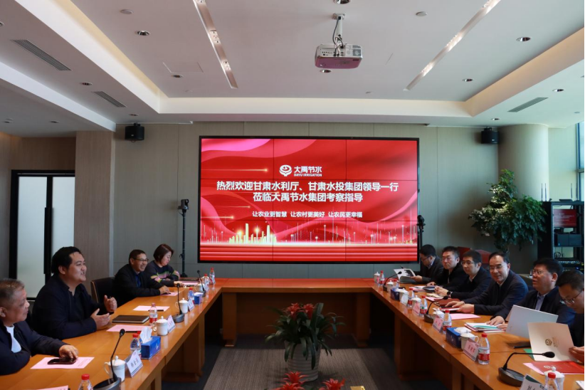 近日,甘肃省水利厅党组书记、厅长牛军,甘肃水投集团公司党委书记、董事长李建军,甘肃水投集团公司党委副书记、总经理李国清等一行领导莅临大禹节水集团北京研发中心进行实地考察与座谈交流。大禹节水集团董事长王浩宇、集团副总裁兼董事会秘书陈静等领导陪同参观考察。