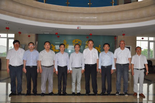 大禹节水集团股份有限公司董事长王栋、总经理张学双、设计院院长刘有录等公司领导与淮安市水利勘测设计研究院董事长吴昌新、副董事长纪建中、总经理陈坚一行合影留念