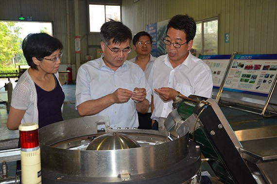江苏大学党委书记兼校长袁寿其、科技处处长李红、流体中心节水灌溉部部长王新坤一行在大禹节水(天津)有限公司滴灌生产车间考察