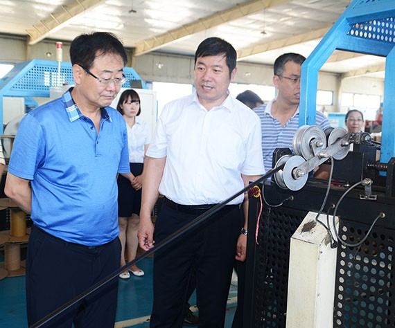 张功行长一行首先来到大禹节水公司综合展厅,从公司发展历程、企业文化、荣誉资质、国际交流与考察等方面进行了深入详细考察。随后,张功行长一行深入公司滴灌、管件生产车间及现代化灌溉设备装备中心实地考察,认真察看生产线运行情况,详细了解公司产品生产工艺、生产流程、产品销售等基本情况,仔细询问公司生产经营情况,公司总裁谢永生一一进行了介绍与解答。