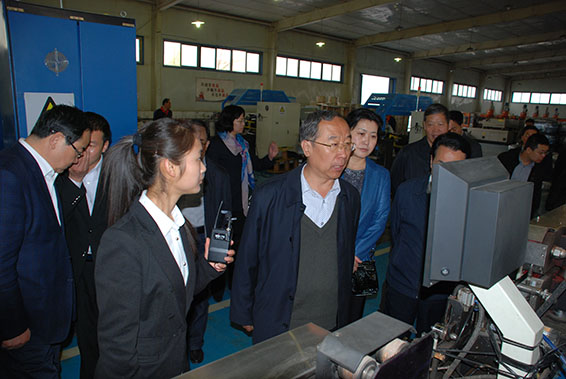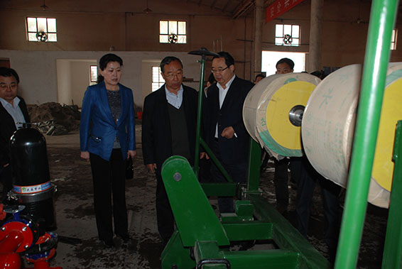 甘肃省政协副主席栗震亚在大禹节水滴灌车间了解产品生产线生产情况