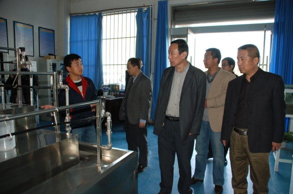 大禹节水集团董事长王栋向颜鲁信一行介绍滴灌管(带)生产工艺