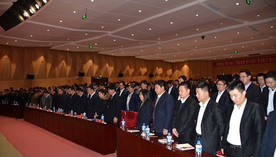 大会向中国优秀水利企业家、科学家,中共十八大代表、大禹节水集团公司创始人王栋同志默哀致敬。