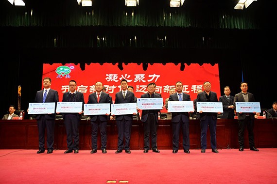 王浩宇指出,2017 年是大禹集团发展历程中极其不平凡的一年,也是面临挑战最多、压力和困难最大的一年,在以党委书记为核心的经营班子带领下,紧紧围绕"保增长、调结构、促发展"的思路,全年超额完成了各项任务目标,模式转型、结构调整、产业格局、人才队伍建设等各项工作取得重大胜利。王浩宇指出,党的十九大报告为集团发展指明了方向,进入新时期,围绕做优做强,必须坚持"三农三水"的产业定位和"八大业务板块"协同发展的总思路;自觉坚持"四个自信、四个核心、四个全面" 不动摇,正确处理好" 速度与质量、规模与效益、新兴与传统、调整结构与控制资产负债率"四个关系。