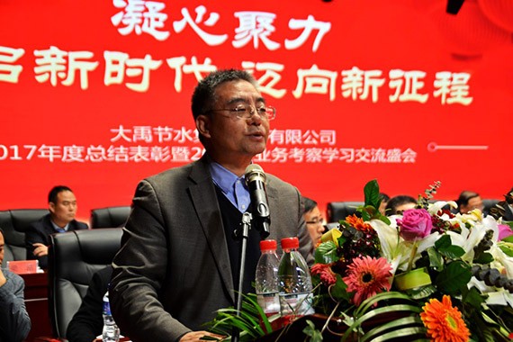 王浩宇强调,大禹节水集团2018工作的总要求和目标任务:全面贯彻落实党的十九大精神,以公司整体战略规划为总纲领,以"三个100亿"为引领,以提高经济增长的质量和效益为中心,深化体制改革创新,优化结构,强化管理,防控风险,增强发展动力和后劲,各项财务指标、劳动生产率、盈利水平、员工收入等主要经济指标较上年全面提高的总目标。围绕上述要求和目标,全年要重点抓好以下几项工作:要突出模式转型,在引领行业中持续做强做优;要突出结构升级,在资源整合中提升协同作战;要突出资本运作,在面向市场中巩固企业价值;要突出科技创新,在创新型企业建设中提升核心竞争力;要突出项目管理,在提质增效中打造精品;要突出管理改革,在资源整合中提高效率和效益;要突出风险防控,在防治结合中增强发展后劲;要突出文化兴企,在凝心聚力中构建企业和谐。