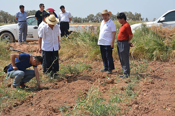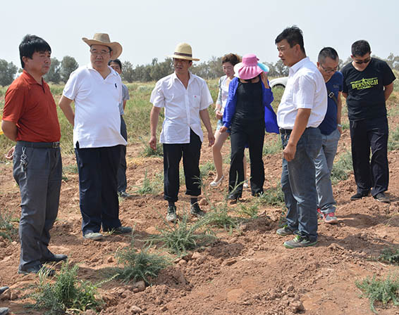 8月30日,大禹节水集团公司董事长王栋、大禹黑枸杞农业科技公司董事长刘伟芳及集团财务部宋金彦部长一行到酒泉市肃州区铧尖乡漫水滩黑枸杞种植试验基地查看黑枸杞苗木的生长及试验田灌溉设备工程建设情况。