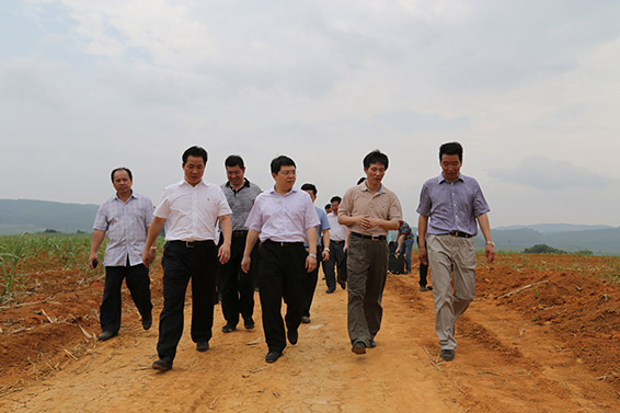 水利部农水司司长王爱国一行在集团公司副董事长王冲、总裁谢永生、董事会秘书王光敏及广西公司总经理张战祥等陪同下在项目地实地考察地埋式滴灌应用情况