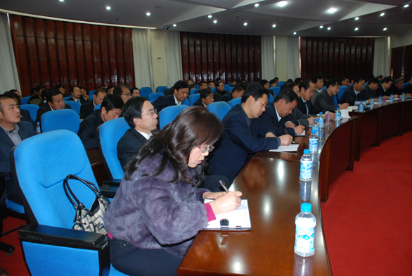 11月19日上午,酒泉市水务系统党的十八大精神传达报告会在酒泉市国际会展中心举行,党的十八大代表、大禹节水集团党委书记、董事长王栋向全市水务系统党政干部职工作报告传达十八大精神。市水务局副局长肖占全主持报告会,市水务局局长李耀及各县市水务局局长等领导认真听取了报告。市水务局,水利系统老干部支部,市水电设计院、水管站等全市水务系统100多名党政干部职工聆听了本次报告会。