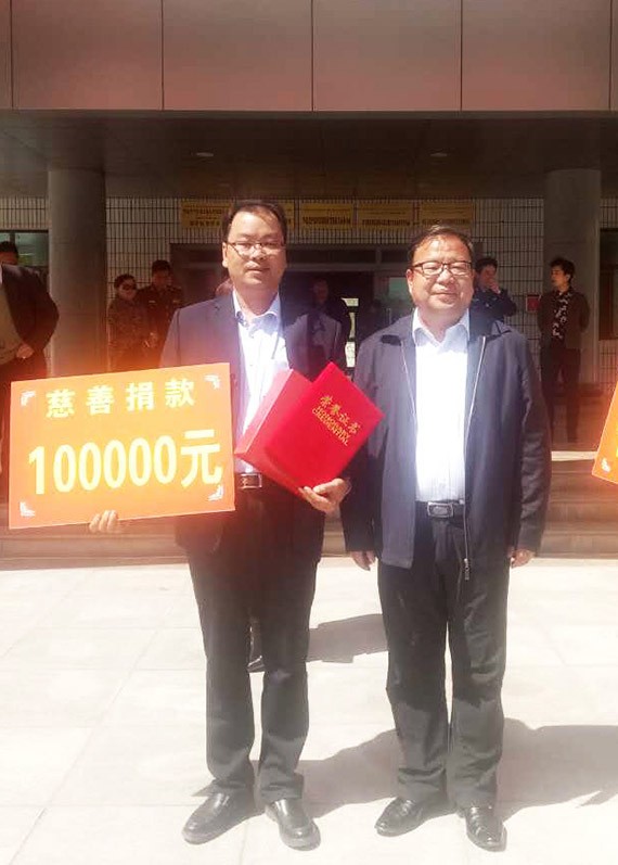 ▲阿克塞县委书记张金荣与集团公司副总裁徐希彬在捐款活动结束后合影