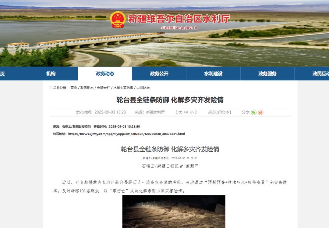 2025年8月20日凌晨,巴音郭楞蒙古自治州轮台县遭遇“短历时、高强度”极端降雨。5分钟降雨量18.6毫米,1小时最大雨强60.9毫米,强降雨快速汇成