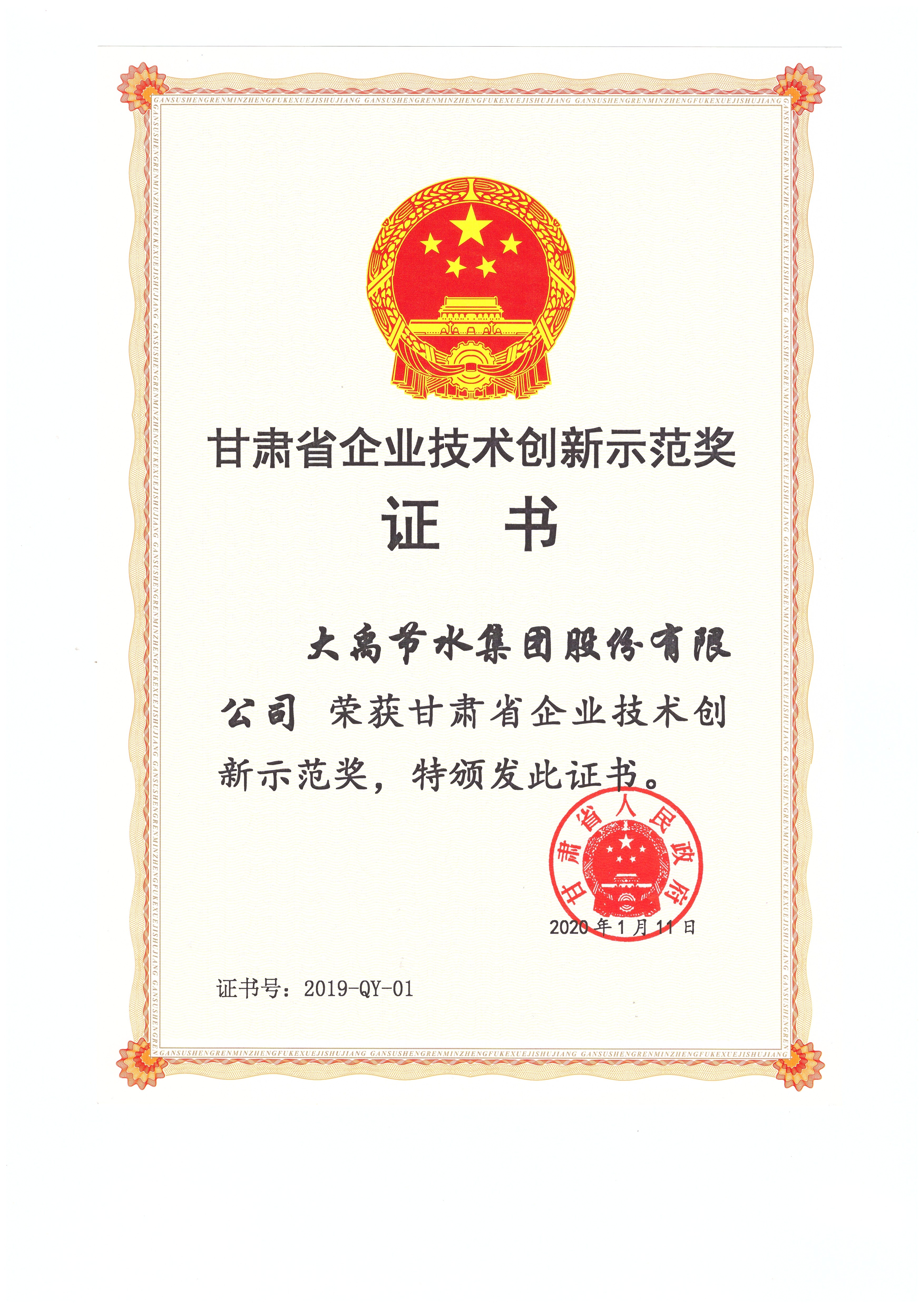 甘肃省企业技术创新示范奖