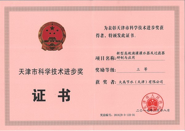 天津市科学技术进步三等奖