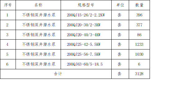 2、项目名称:大禹节水供应链公司鹿邑项目不锈钢深井潜水泵材料采购项目